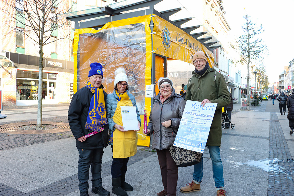 Alle Jahre wieder, das trifft auch hier zu. Der Lionsclub Eschweiler-Ascvilare, der aktuell auf sein 20-jähriges Bestehen zurückblickt, freute sich zum Auftakt seines traditionellen Grünkohl-Verkaufs in der Grabenstraße am vergangenen Samstag, dem Eschweiler Kinderschutzbund erneut eine Spende zu überreichen. Dies geschah symbolisch, da die kulinarische Benefizaktion noch an den kommenden zwei Samstagen (9. und 16. Dezember) sowie am dritten verkaufsoffenen Adventssonntag (17. Dezember) ab jeweils 11:00 Uhr stattfinden wird und zugunsten verschiedener Projekte der Kinder- und Jugendarbeit in Eschweiler durchgeführt wird.