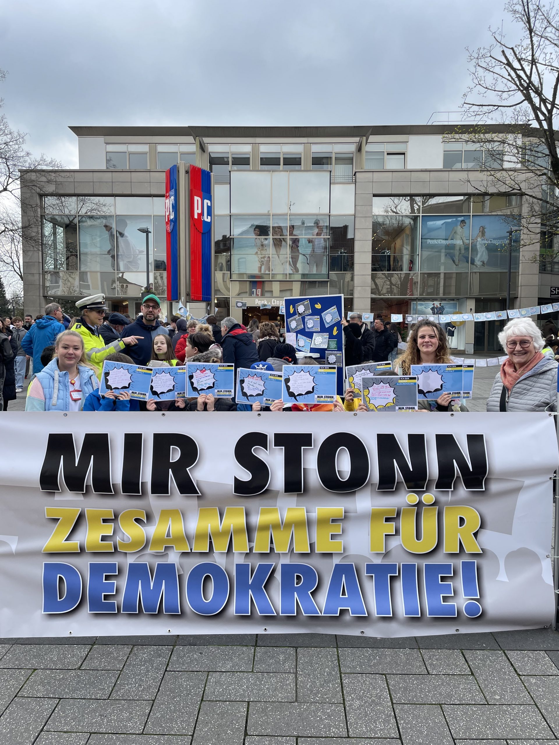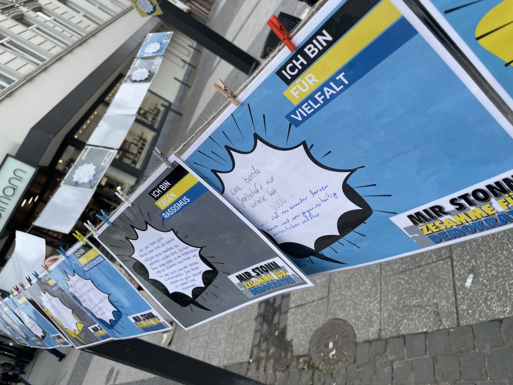 Am 21.03.2024 hat sich der Kinderschutzbund Ortsverband Eschweiler e.V. an der Aktion des Eschweiler Bündnisses für Demokratie beteiligt und diese aktiv mit gestaltet. Am Vormittag haben sich neben vielen interessierten Bürgern ca. 700 Schüler von vielen Eschweiler Schulen in der Innenstadt getroffen und ihre Statements zum Thema „Rassismus“ auf vorbereitete Blätter geschrieben, um diese dann rund um die Grabenstraße aufzuhängen. In den vom Kinderschutzbund getragenen Offenen Ganztagsschulen wurde das Thema mit den Kindern vorher erarbeitet und einige Gruppen haben am Vormittag ihre Blätter persönlich in der Stadt aufgehängt.