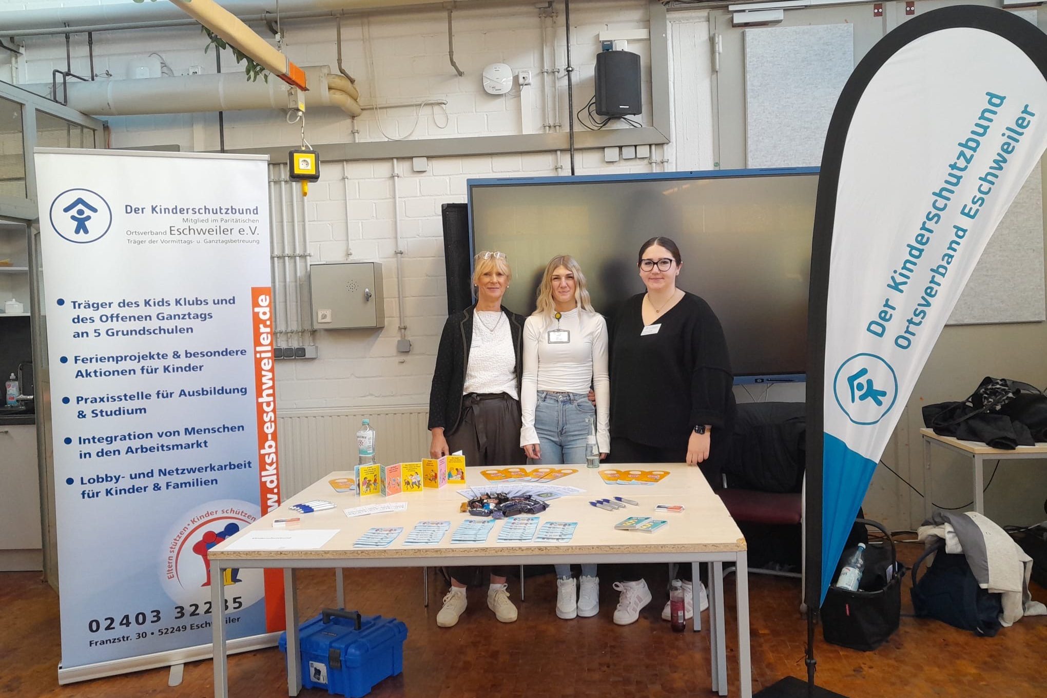 Unsere Teammitglieder Halina Zuber, Sarah Cremer und Anna-Lena Schäfer (auf dem Foto von links) haben neben unserer Fachberaterung Rebekka Karbig an der jährlich stattfindenden Trägermesse des „Berufskolleg Simmerath/Stolberg“ in Stolberg teilgenommen.